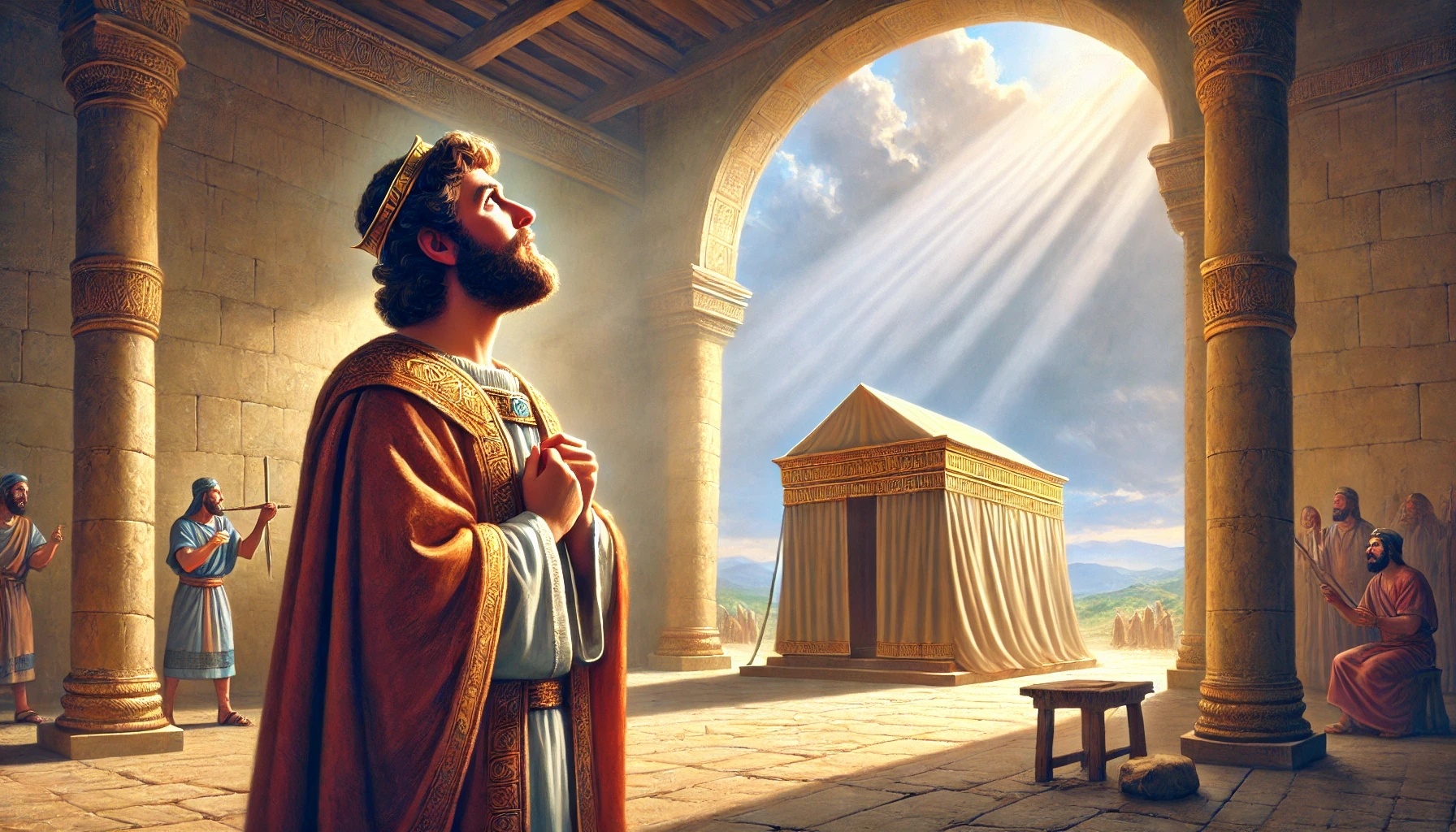David is sitting in his house, surrounded by peace and stability. He looks at his life and realizes: he himself lives in a solid house, while the ark of the covenant is still in a tent. Within him grows the desire to give something back to God—a house worthy of His presence.