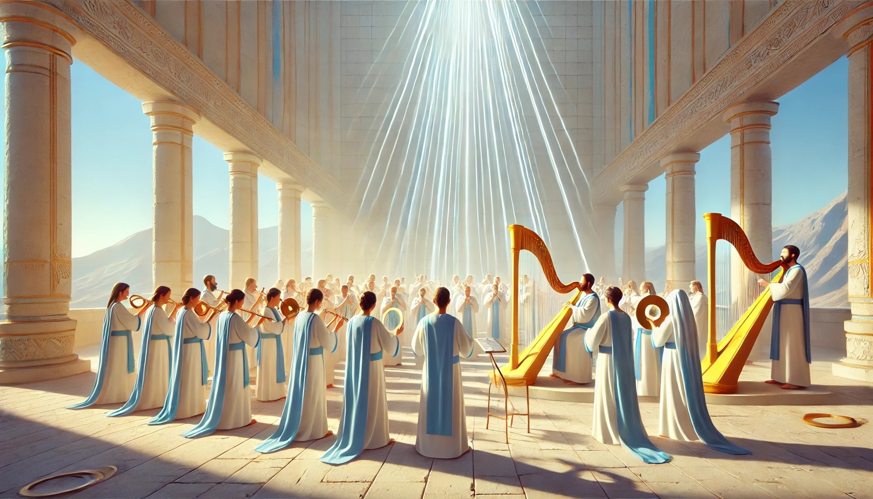 The atmosphere of this chapter is different—almost audible. After all the arrangements and divisions, music now takes center stage. People are chosen whose task is to serve God with singing and instruments.