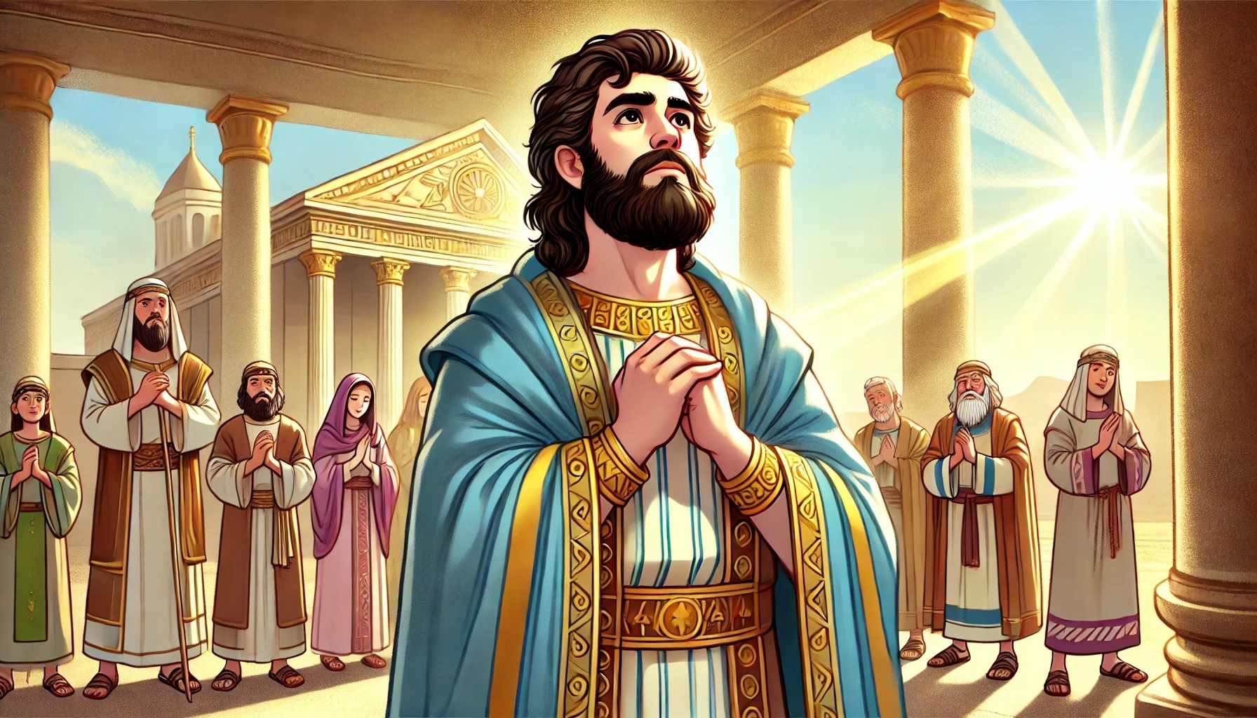 But now something just as important happens. Solomon steps before the people and begins to pray. He does not speak quietly to himself, but aloud so that everyone can hear him. It is a special prayer that shows what is truly in his heart.