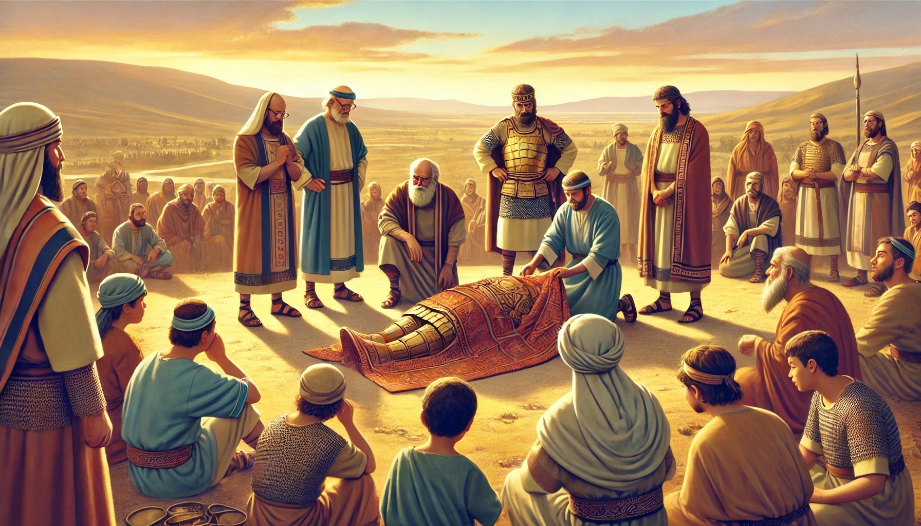 Saul fights against the Philistines and loses the battle. His sons die, and he himself also loses his life.
